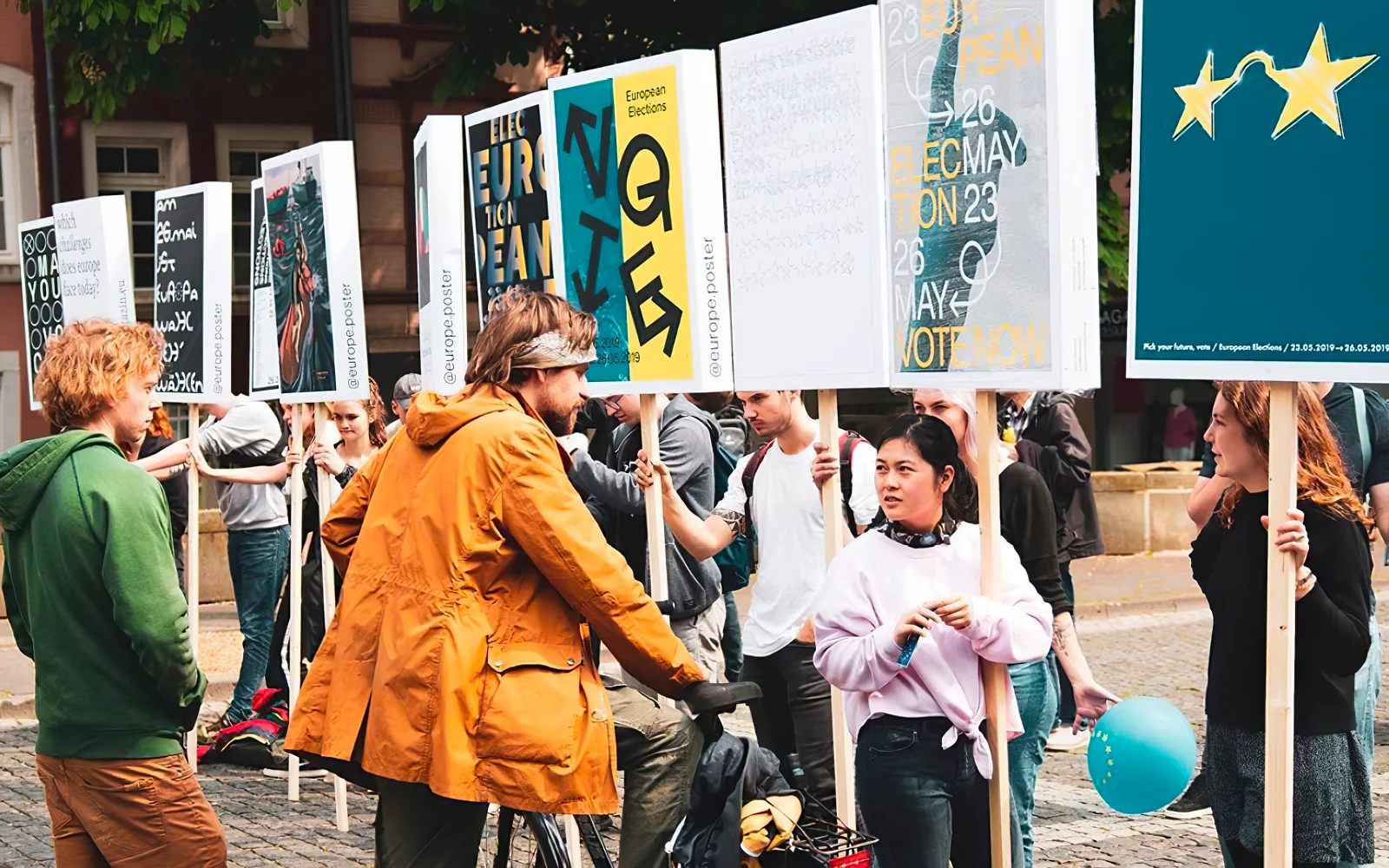 DURING THE ELECTIONS, MORE THAN HALF OF ELIGIBLE VOTERS CAST THEIR BALLOTS - THE FIRST TIME TURNOUT HAS RISEN SINCE THE FORMATION OF THE EU. EXHIBITED IN PROTEST FORM IN AACHEN, GERMANY AND THE PROJECT WAS FEATURED ON SLANTED PUBLISHERS. VIDEO CREDIT MARC DAVID.