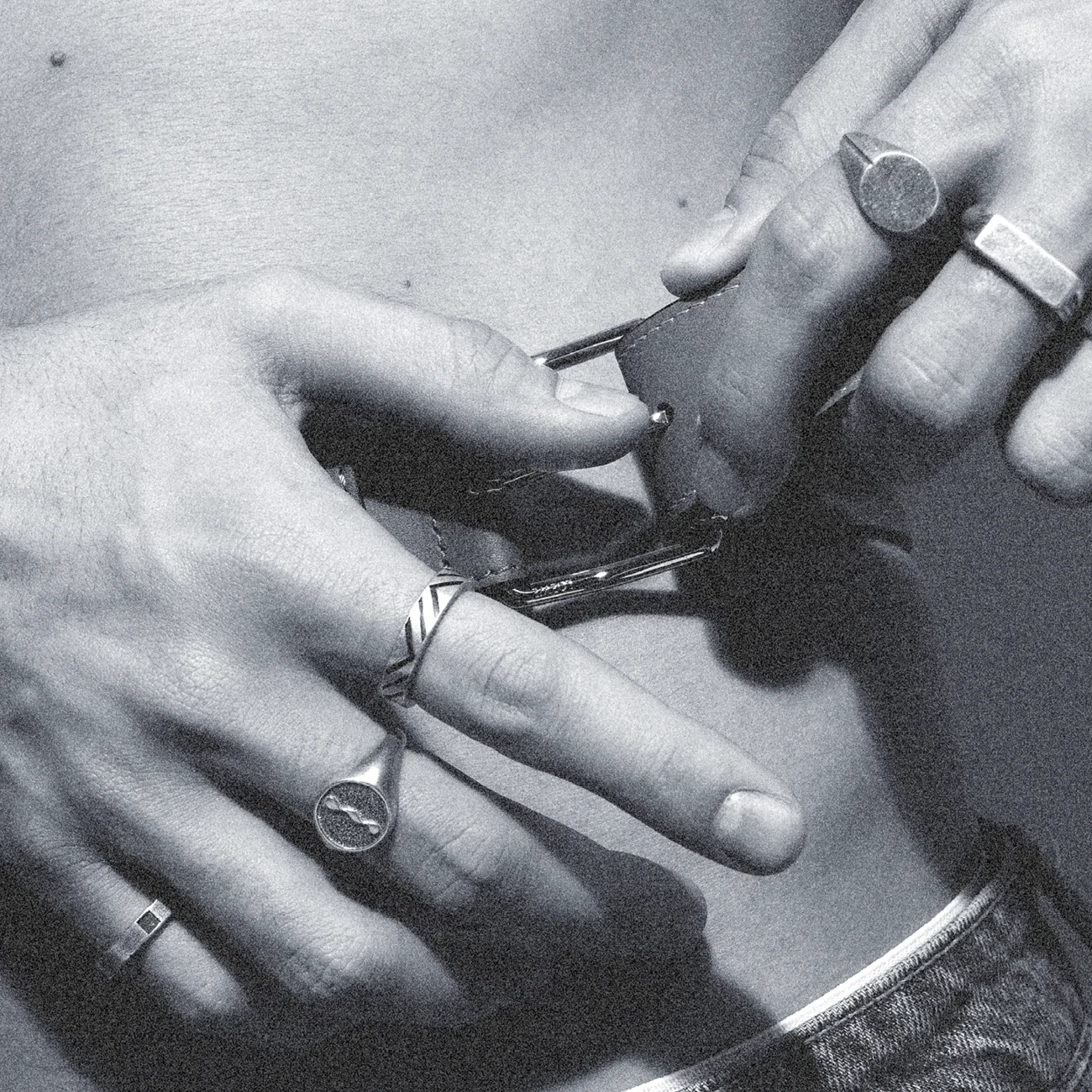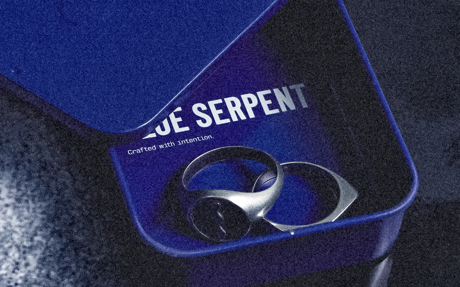 CRAFTED IN SOLID 925 SILVER, ALWAYS, BLUE SERPENT'S JEWELLERY AND IDENTITY MOVES BETWEEN CLEAN DESIGN AND 'LIVED IN' LAYERING. THE LOGO WAS INFORMED BY THE SHAPES OF SERPENT EYES. VISUAL TEXTURING ADDS TO THE LIVED IN LAYERING AND DEPTH OF MEANING WITHIN EACH PIECE.