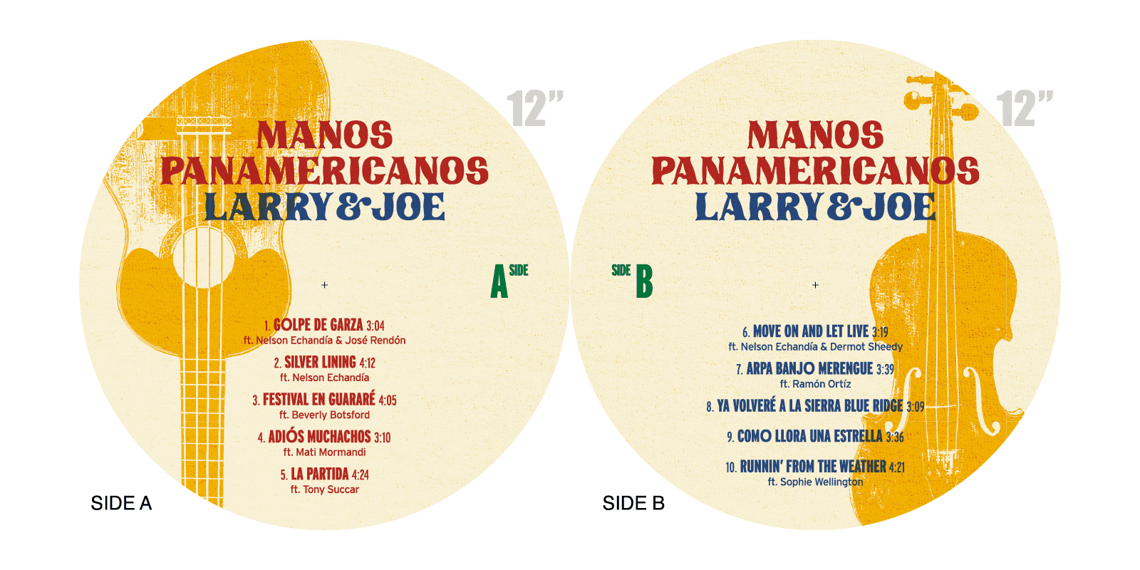 COVER DESIGN AND PACKAGING FOR MULTI-INSTRUMENTALIST, GRAMMY NOMINATED MUSICAL DUO FROM NORTH CAROLINA AND VENEZUELA. MANOS PANAMERICANOS FEATURES ARTISTS AND FRIENDS FROM ALL OVER NORTH AND SOUTH AMERICA IN THIS CROSS-GENRE EXPLORATION OF AMERICAN MUSIC FROM TANGO TO WALTZ TO MERENGUE TO POP. CUSTOM TYPOGRAPHY AND ILLUSTRATIONS BASED ON THE ARRAY OF INSTRUMENTS.