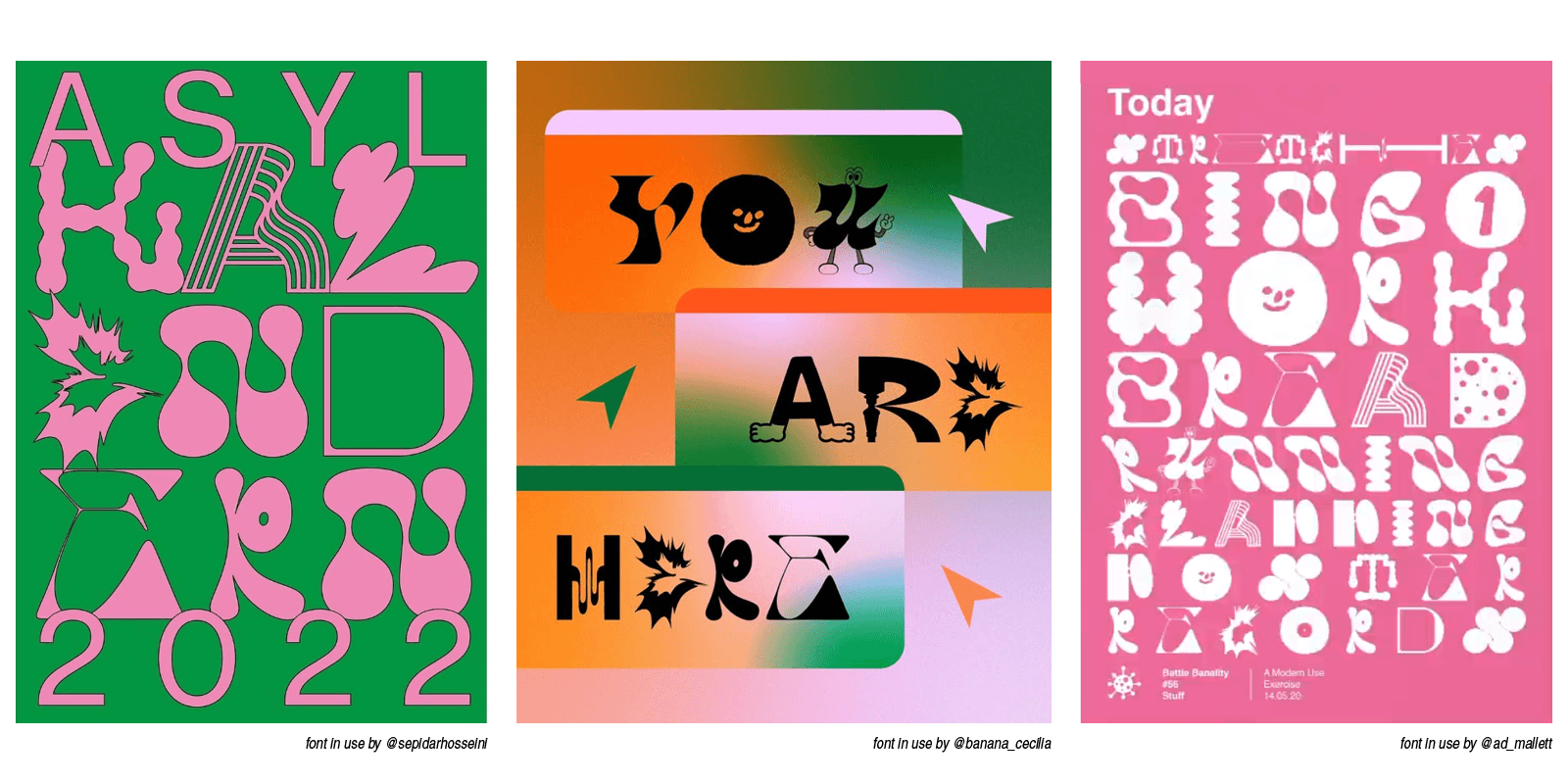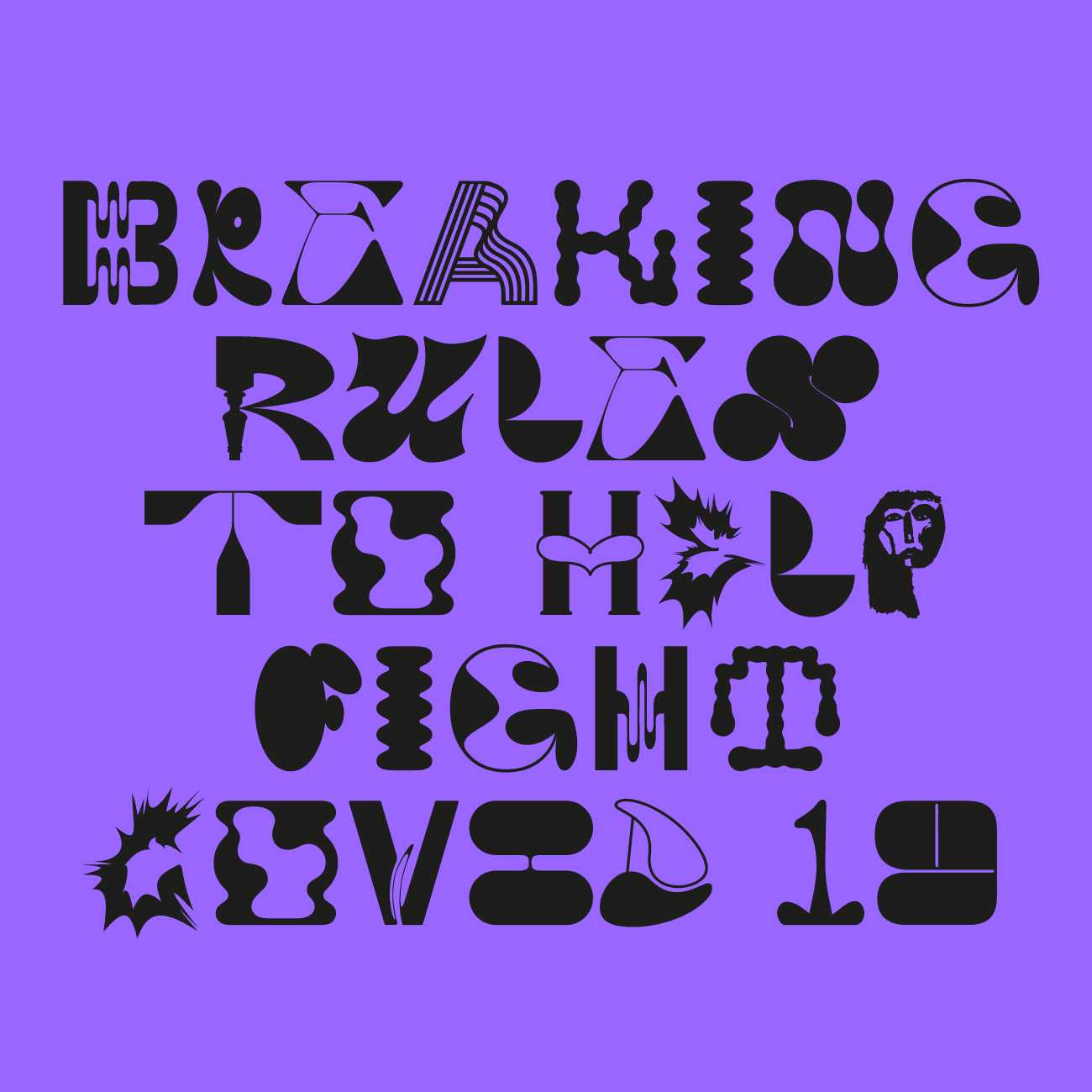 SPEARHEADED BY RAISSA PARDINI, GROUPFONT IS A TYPEFACE DESIGNED IN COLLABORATION WITH 36 CREATIVES DURING THE PANDEMIC TO RAISE MONEY FOR THE WORLD HEALTH ORGANISATION. TO DATE THERE HAS BEEN A TOTAL OF £6750 DONATED. MY ROLE INCLUDED THE DESIGN FOR THE UPPERCASE J AND V CHARACTERS. THIS PROJECT IS NOW FEATURED AS PART OF THE EDUCATIONAL WORKBOOKS AT THE DESIGN MUSEUM'S WORK IN PROGRESS TABLE.